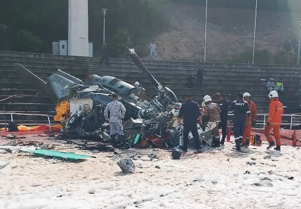“The two helicopters collided during flight training,” said Mr Suhaimy Mohamad Suhail, senior operations commander from the fire and rescue department, adding that all 10 crew members on board were confirmed dead by medical officers.