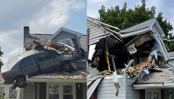 The fire company shared unbelievable photos of the crash and the gaping hole left behind in the side of the house.