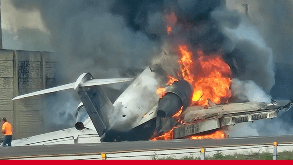 “I quickly realized that it was a private jet on the southbound lane that was completely crashed, engulfed in flames,” he said.